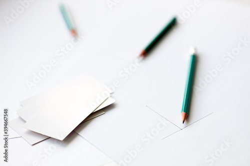crayons, blank, empty, paper, business card, stationary, office, business, white, card, no people, line, drawing, vignetting, start, thought, defocused, blur, bokeh