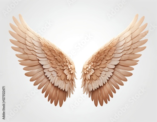 angel wings, wing, feather, beige, brown, light brown, tan, pastel, soft, delicate, aethereal, heavenly, spiritual, faith, hope, love, religious, mystical, fantasy, design element, isolated, white background, plumage, freedom, flight, fly up, celestial, peace, serenity