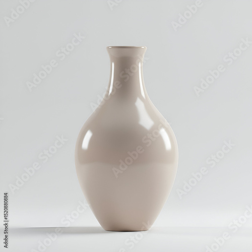 Beige ceramic vase with simple design in a minimalist studio setting. Empty, elegant display piece with a neutral background. Home decor object in a white interior studio -