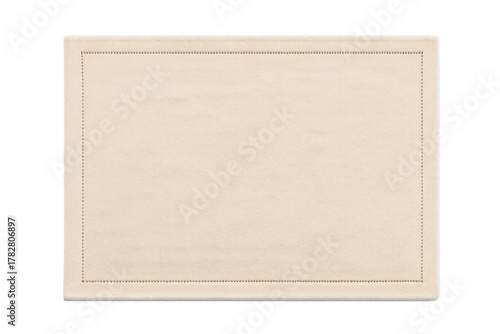 Beige fabric placemat with stitching border on transparent background