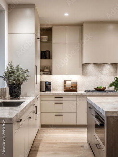 minimalist, functional, appliance, kitchen, stylish, stone, drawer, floor, natural, wood, simple, room, luxury, home, apartment, contemporary, light, house, neutral, cabinet, roomy, furniture, interior, marble, countertop, design, beige, elegant, decor, cream, modern, clean