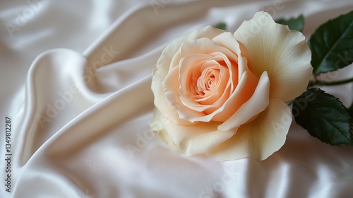Beige Rose on a White Silk Background, Creating a Soft and Elegant Visual of Timeless Beauty and Delicate Luxury