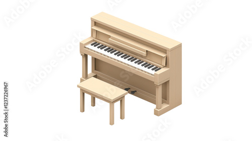 piano, music, musical, instrument, beige, stool, vertical, minimalism, elegance, simplicity, isometric, three-dimensional, render, illustration, art, design, creativity, classic, keyboard, key, sound, melody, harmony, composition, performance, concert, practice, learning, education, hobby, talent, skill, passion, relaxation, entertainment, culture, form, object, nobody, indoor, studio, shot, high, angle, view, close, transparent, background, isolated