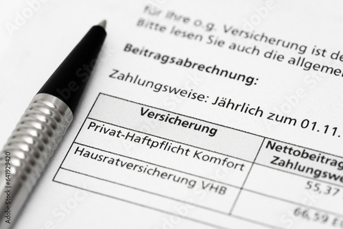 Beitragsrechnung Versicherung