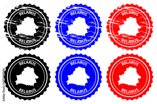 Belarus - rubber stamp - vector, Belorussia map pattern - sticker - black, blue and red