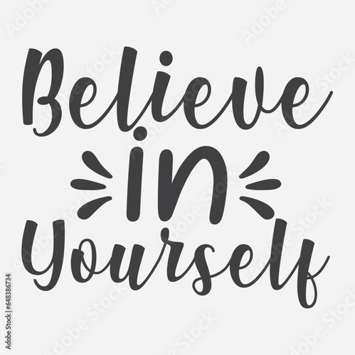 Believe in yourself, vector. Wording design, lettering. Wall artwork, wall decals, and home decor are isolated on a white background. Motivational, inspirational life quotes