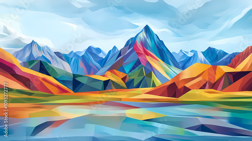 Belize cubism country landscape illustration art. Prismatic Mountain Peaks. Illustration