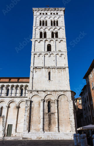 Bell tower of San Michele in Foro Church in Lucca, Tuscany, Italy