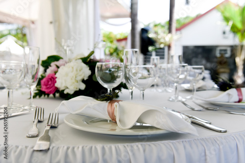 table, gastronomy, dinner, wedding, decoration, setting, party, banquet, dinner, celebration, plate, reception, napkin, event, food, tablecloth, supply, luxury, fork, knife, meal, wine, interior, cutlery