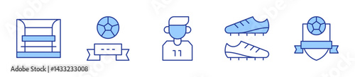 bench, football boots, football badge, badge, football player. Football Icon vector illustration. Line Duotone style. Editable stroke
