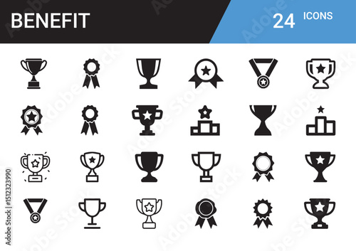 Benefit Icons: An illustrative collection of benefit icons, each depicting symbols of achievement, recognition, and reward, perfect for conveying success and positive outcomes.