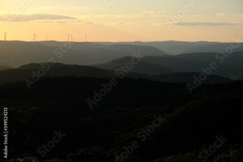 sunset, heaven, mountain, sunrise, countryside, sun, nature, cloud, dusk, morning, silhouette, light, orange, hill, horizon, evening, dawn, view, blue, pretty, fog, paint, sunset