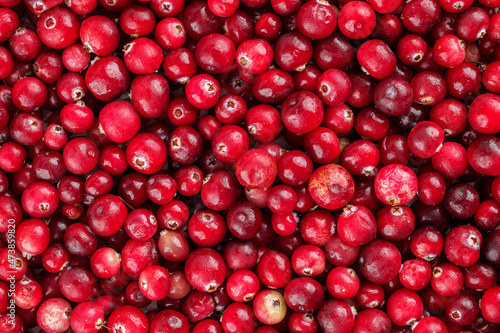 Berries of all types of cranberries are edible, actively used in cooking and food industry, selective focus, close-up