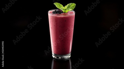 Berry smoothie topped with mint and blackberries perfect for a refreshing drink at any time of day