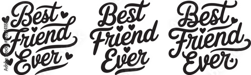 Best Friend Ever Typography Sticker Design with Hearts – Friendship Quote Graphic