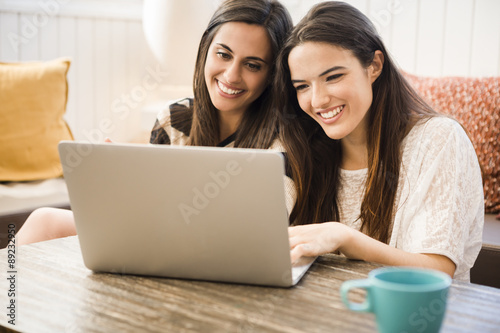 woman, friends, working, laptop, hot drink, shop, home, young, table, student, sitting, happy, drink, cup, latino, cafes, work, computer, cyberspace, meeting, girl, relax, break, portrait, urban, friendship, study, adult, hispanic, technology, together, beautiful, smiling, 2, people, female, caucasian, leisure, talking, lifestyle