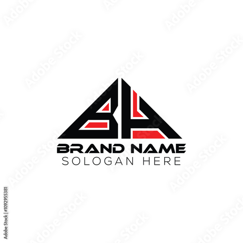 BH triangle letter logo design with triangle shape. BH triangle logo design monogram. BH triangle vector logo template with red color. BH triangular logo Simple, BH triangle logo design monogram.