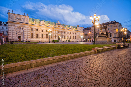 library, national, college, trino, piedmont, italian, palace, square, charles, albert, culture, tour tourism, travel, building, architecture, night, blue, sunset, gloaming, center, city, vintage, italy, mediaeval, baroque, old, europa