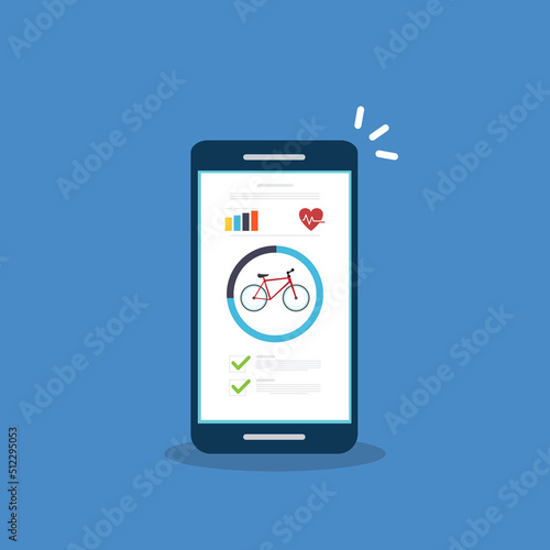 Bicycle, Cycling, Fitness tracking app on mobile phone screen.
