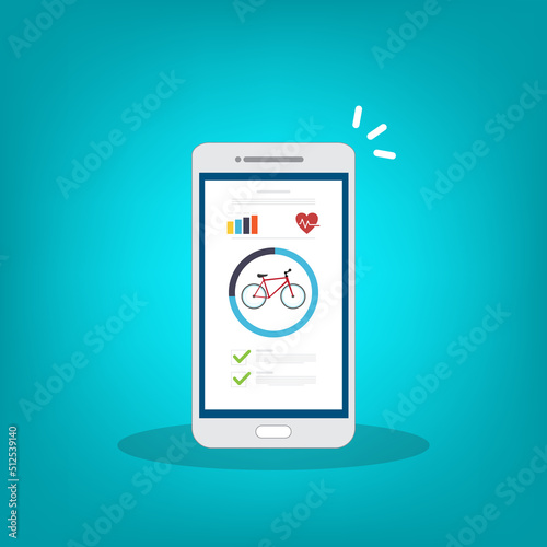 Bicycle, Cycling, Fitness tracking app on mobile phone screen.