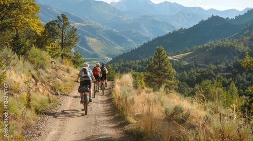 Bicycle hiking travel in the mountains illustration generated by ai