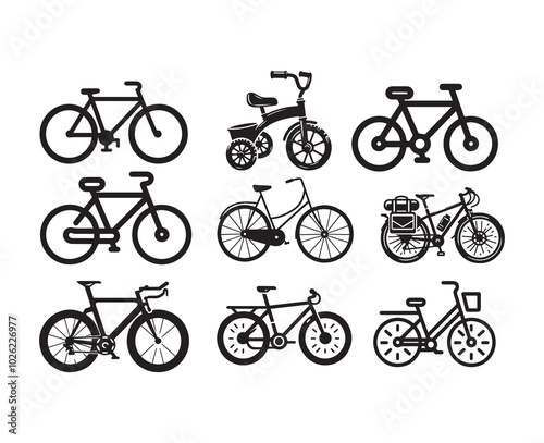 bicycle, bike, vector, silhouette, illustration, cycle, cycling, sport, wheel, vintage, ride, transport, design, bicyclist, pattern, set, pedal, transportation, travel, drawing, biking, icon, old, cartoon, mountain