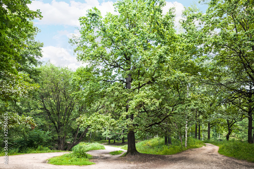 summer, forest, oak, large, tree, big, meadow, wood, landscape, scenic, scenery, view, green, season, august, foliage, leaf, grove, tree branch, nature, natural, russian, park, moscow, day, footpath, path, pathway, glade, edge, old, blue, sky, russia