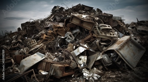 pile, heap, environment, trash, metal, material, industry, old, scrap, dump, rust, steel, large, pollution, iron, junk