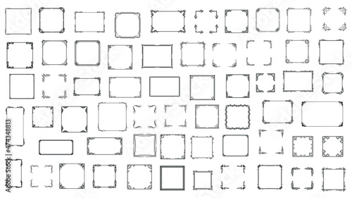 Big Set Black Simple Line Frame Collection Doodle Square Floral Frame Elements Vector Design Style Sketch Isolated Illustration For Banner