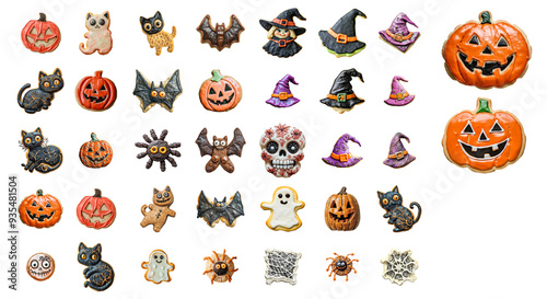 Big Set of Spooky Halloween Cookies in PNG Format: Perfect for Festive Designs and Decorations