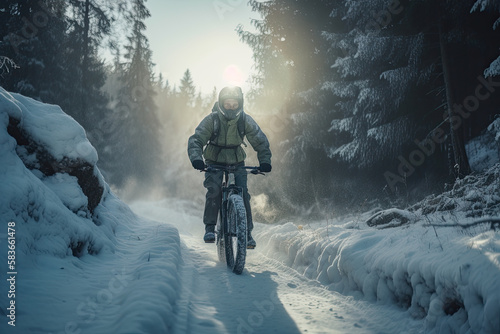 bike, bicycle, cycling, sport, biker, biking, mountain, bicyclist, winter, outdoors, cycle, helmet, riding, mountain bike, woman, adventure, snow, nature, road, action, people, park, activity, sport, ride, generative, ai