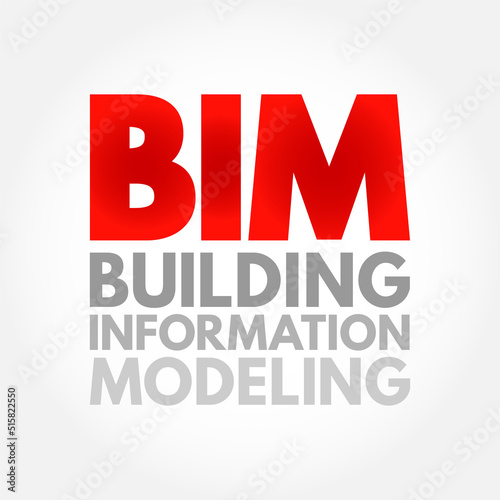 BIM Building Information Modeling - digital representation of physical and functional characteristics of a facility, acronym text concept background