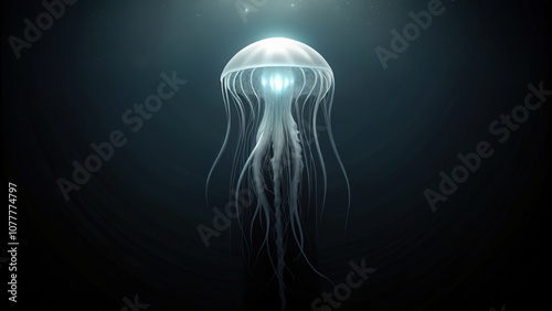 Bioluminescent Jellyfish Glowing in the Dark Depths
