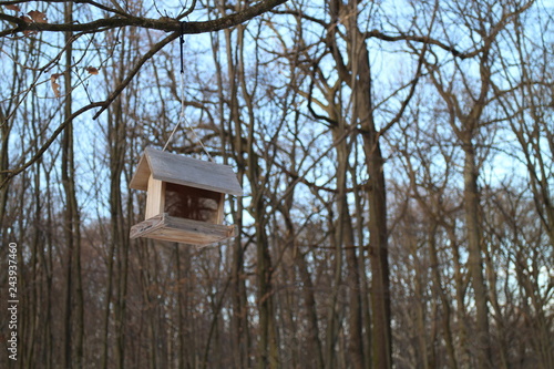 Bird feeder in in forest on Kačín, Malé Karpaty, Slovakia