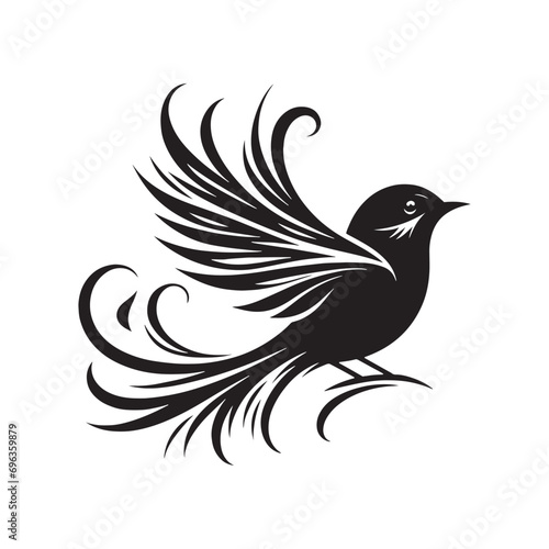 bird silhouette: Songbird Symphony, Melodious Robins, and Harmonic Avian Duets in Musical Shadows - Minimallest bird black vector