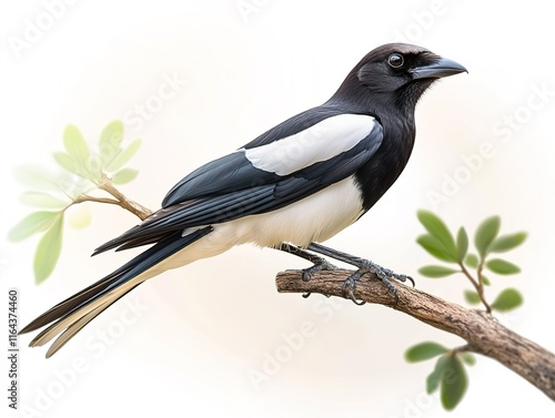 birds in nature, magpie in the garden on a tree branch