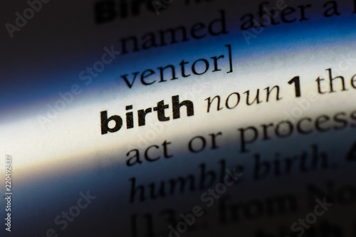 birth, book, closeup, concept, definition, dictionary, english, idea, info, isolated, macro, page, paper, printed, text, word, writing