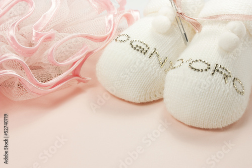 birth, born, children, girl, female, flake, welcome, pink, fingerprint, footprint, foot, waist, trip, start, step, journey, joy, event, give, shoe, card, card, tape, pacifier, plush, background, brooch, nurse, satin, gift, love