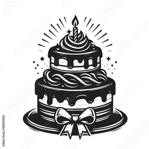 anniversary, sweet, illustration, candle, dessert, food, black, graphic, vector, design, holiday, isolated, icon, birthday, party, silhouette, background, celebration, muffin, delicious, cream, element, decoration, cake, happy, symbol, outline, line, cupcake, desert