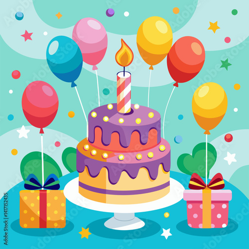 birthday cake, celebration, party, balloon, gift, happy birthday, festive, colourful, joy, fun, joyful, cake, candle, sweet, delicious