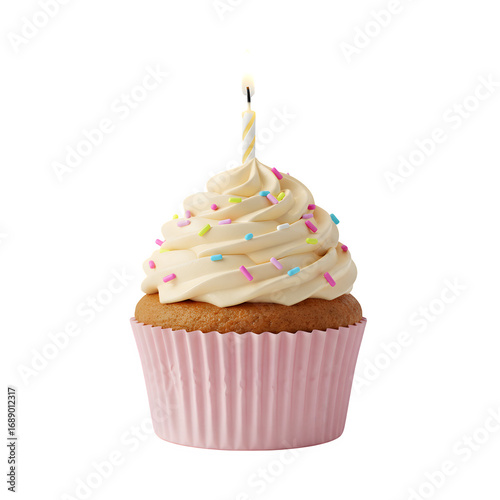 Birthday Cupcake with Candle, isolated on white or transparent background. PNG