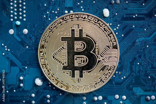 Bitcoin BTC the new virtual electronic money with electronic circuit background