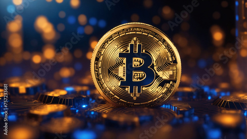 Bitcoin cryptocurrency digital money golden coin technology and business concept
