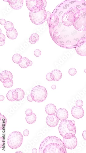 Bitcoin economic financial bubble. crypto currency 3D illustration. Business concept. Pink bubbles on white background. Bit, Coin, mining concept