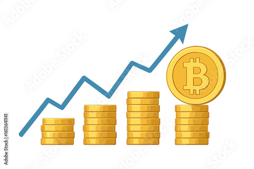 Bitcoin growth concept. Cryptocurrency value increase. BTC price chart with arrow up. Financial success and profit. Digital money investment revenue. Crypto market graph.