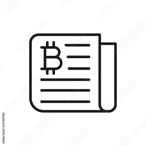 Bitcoin sign on newspaper. Financial news icon line style isolated on white background. Vector illustration