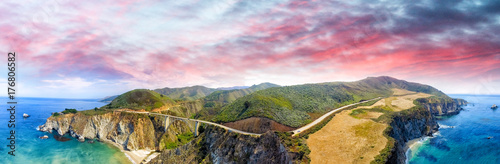 Bixby Bridge and Big Sur aerial panoramic view, California