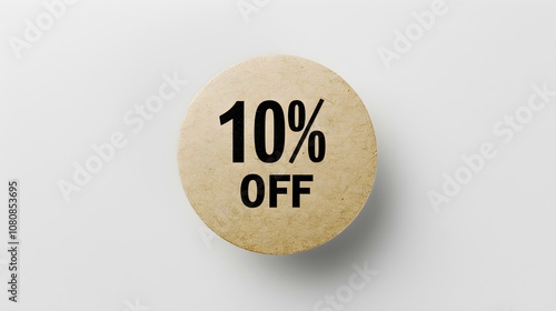 Black '10% OFF' Text on a Beige Round Paper Note. White Background with Copy Space