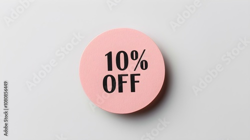 Black '10% OFF' Text on a Blush Round Paper Note. White Background with Copy Space