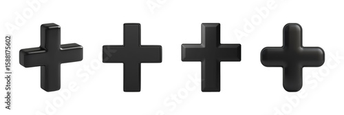 plus, signs, black, three-dimensional, symbol, design, cross, shape, set, graphic, icon, abstract, isolated, background, transparent, collection, minimal, glossy, shiny, decoration, art, contemporary, digital, illustration, concept, creative, style, geometric, element, aesthetic, sleek, statement, simplicity, clean, polished, smooth, futuristic, innovative